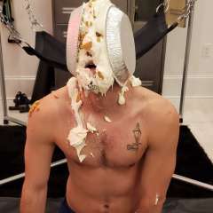 Getmessy924 had a sloppy pie dumped all over his head by megapies